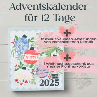 Zu jedem Adventskalender, den Ihr bei mir oder über mich bestellt, erhaltet Ihr 12 exklusive Video-Anleitungen von verschiedenen Demos und